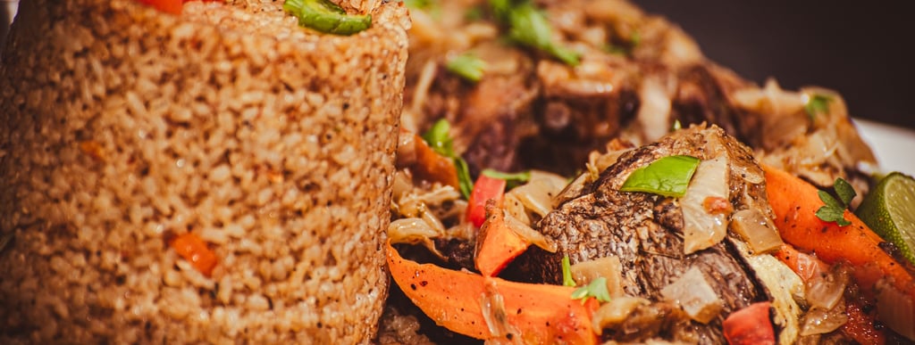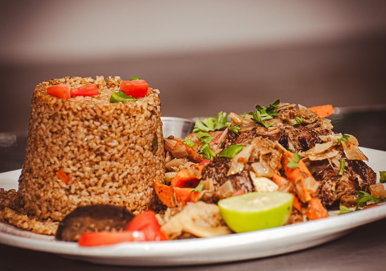 Ragoût de viande à la sauce arachide onctueuse.