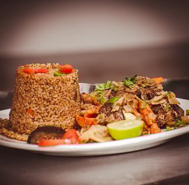 Viande grillée avec épices maison et légumes.